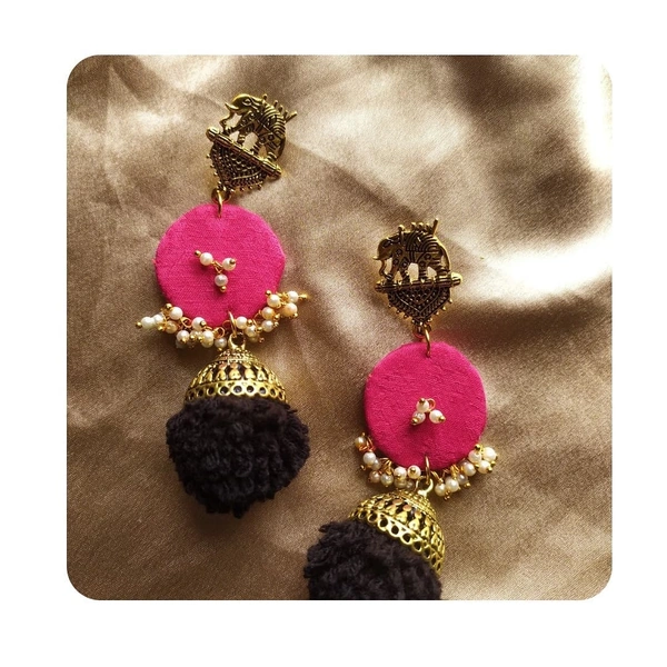 Black Pompom Pink Earrings