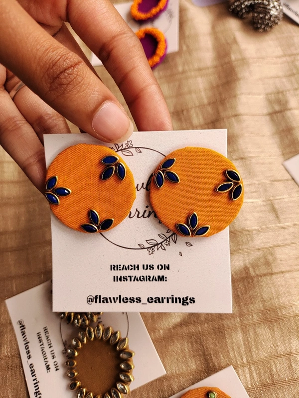 Yellow Blue Kundan Studs